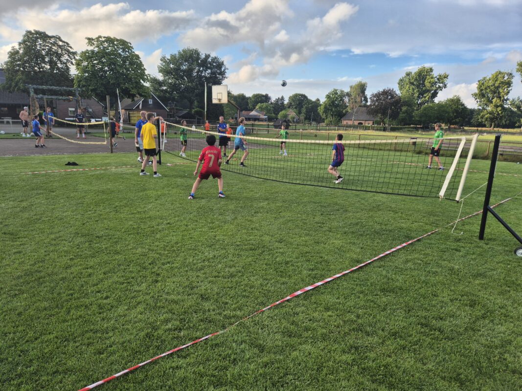 Een stevige regenbui zorgde voor een frisse onderbreking, maar dat hield de oudsten niet tegen om daarna een fanatiek 2 tegen 2 voetbaltoernooi te spelen.