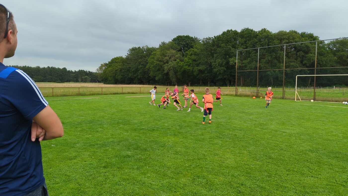 Maar gelukkig is er tijd om rustig op te starten. In het bos spelen de kinderen het transferspel, een voetbalvariant met trainers, wissels en uiteraard de nodige discussies: mag je nou wel of niet een tweede trainer op de bank zetten?