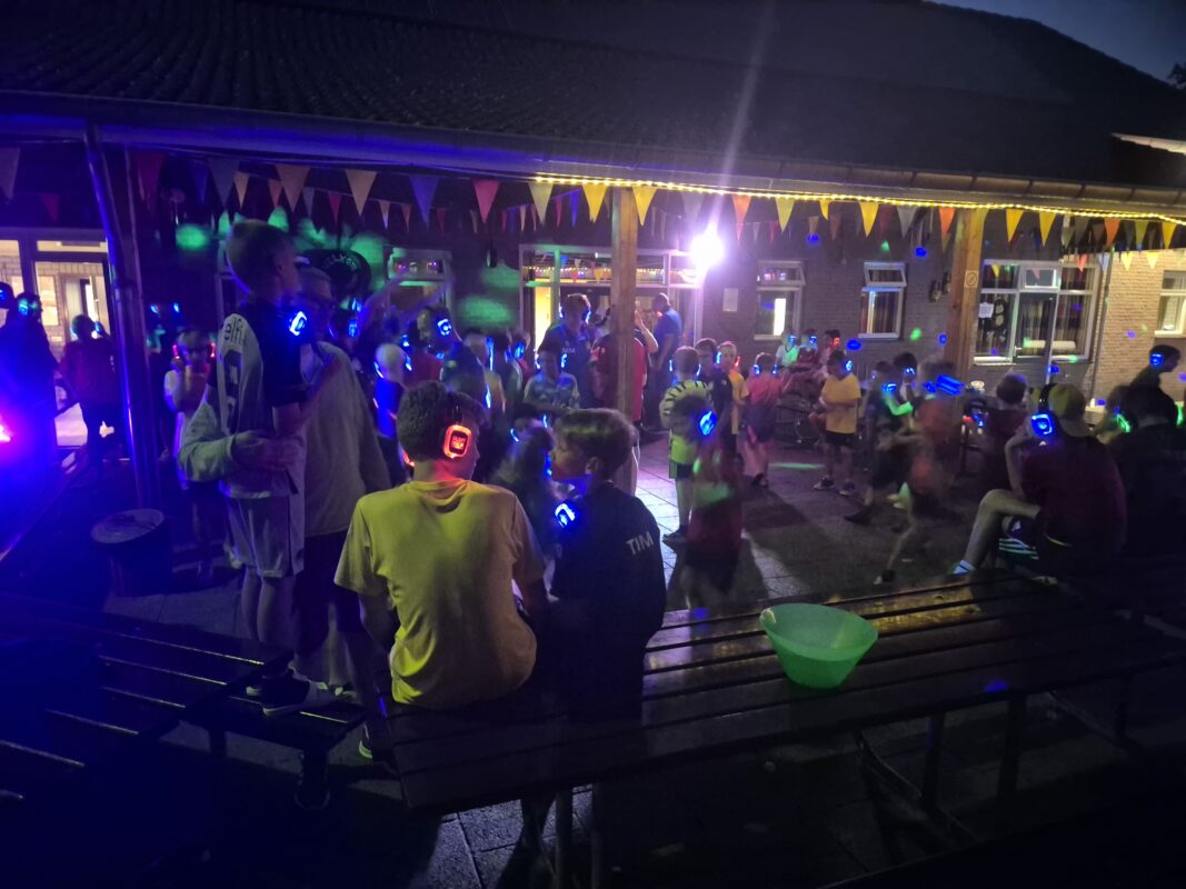Maar kamp is natuurlijk geen kamp zonder een knallende afsluiter: de silent disco! Met lichtjes, topbeats en natuurlijk héél veel dansende kinderen (en leiding).